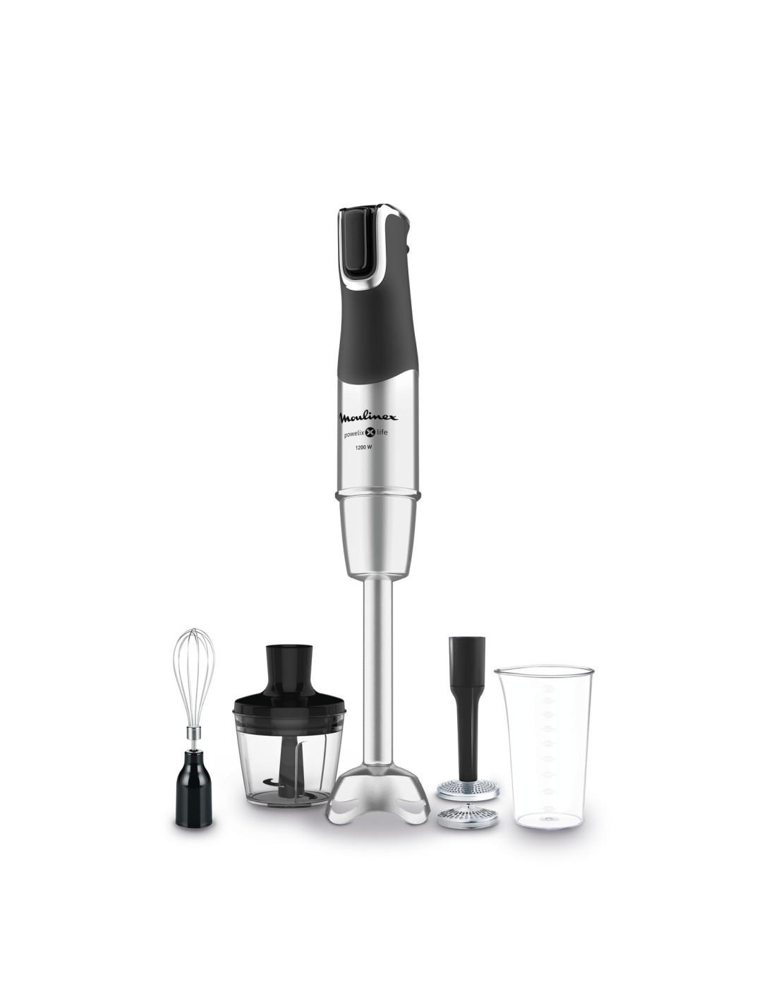 Moulinex MIXER A IMMERSIONE INFINYFORCE PRO POWELIX. Capacità ciotola: 0,8 L, Capacità contenitore tritatutto: 0,5 L. Tipo: Frullatore ad immersione, Colore del prodotto: Nero, Acciaio inossidabile, Paese di origine: Cina. Materiale del bastone: Acciaio inossidabile, Materiale lama: Titanio. Potenza: 1200 W, Alimentazione: AC. Larghezza: 70 mm, Profondità: 400 mm, Altezza: 98 mm