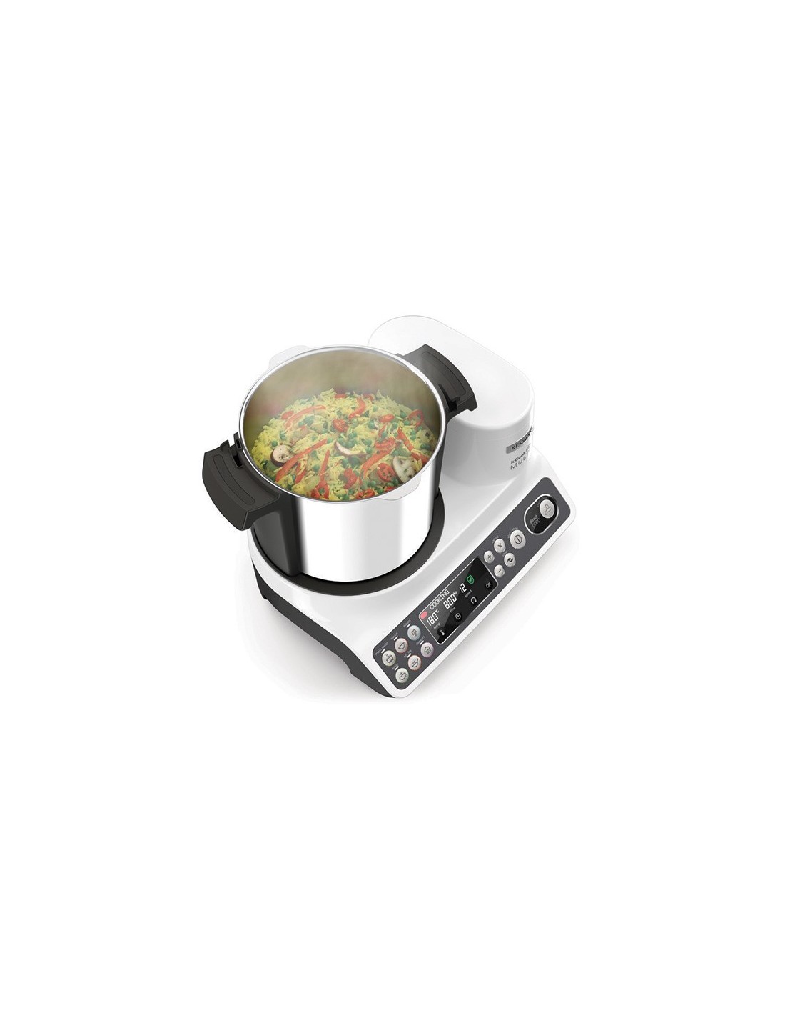 Potenza 1500 W in cottura, 550 W a freddo, 4,5 l capacità ciotola (capacità lavorabile 2,6 l - 8 porzioni), DIRECT SERVE: food processor che include 5 dischi per poter lavorare direttamente in ciotola o in altro recipiente. Accessori inclusi: lame tritatutto, speciale pala mescolatrice, frusta per montare a neve, cestello per la cottura a vapore. Range temperature 30°C - 180°C, 6 programmi pre-impostati, 12 velocità pre-impostate di mescolamento, parti lavabili in lavastoviglie, ricettario.