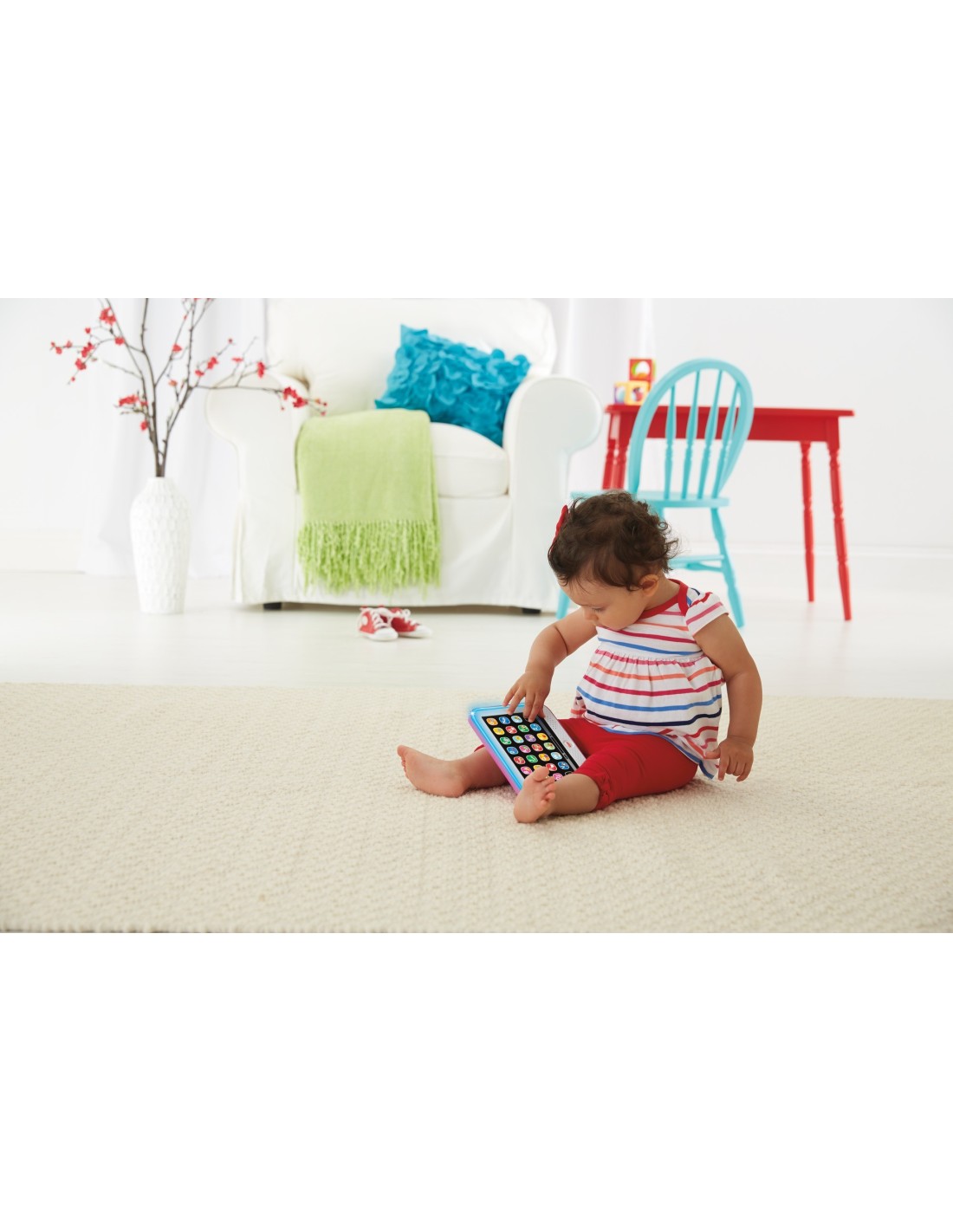 Offre una varietà di canzoncine, frasi e suoni adatti alla fase del suo sviluppo con tre livelli di gioco. Il bambino può premere uno dei 28 tasti "app" per attivare suoni e musica - e scoprire le lettere, le prime parole, gli animali e tanto altro. Per aggiungere ancor più divertimento, lo schermo si illuminerà al ritmo della musica e delle frasi.