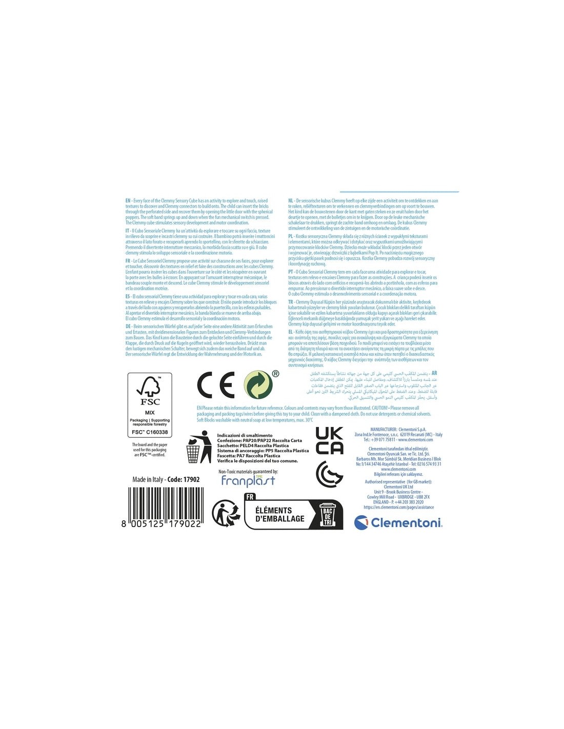 Clementoni Sensory Activity Cube. Età consigliata (min): 0,5 anno/i, Età consigliata (max): 3 anno/i, Numero minimo di giocatori: 1, Colore del prodotto: Multicolore
