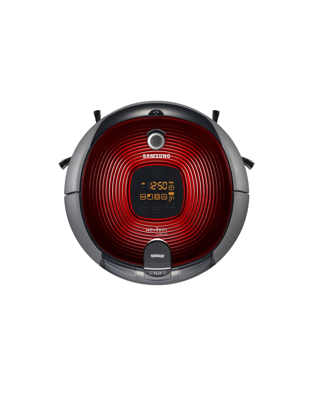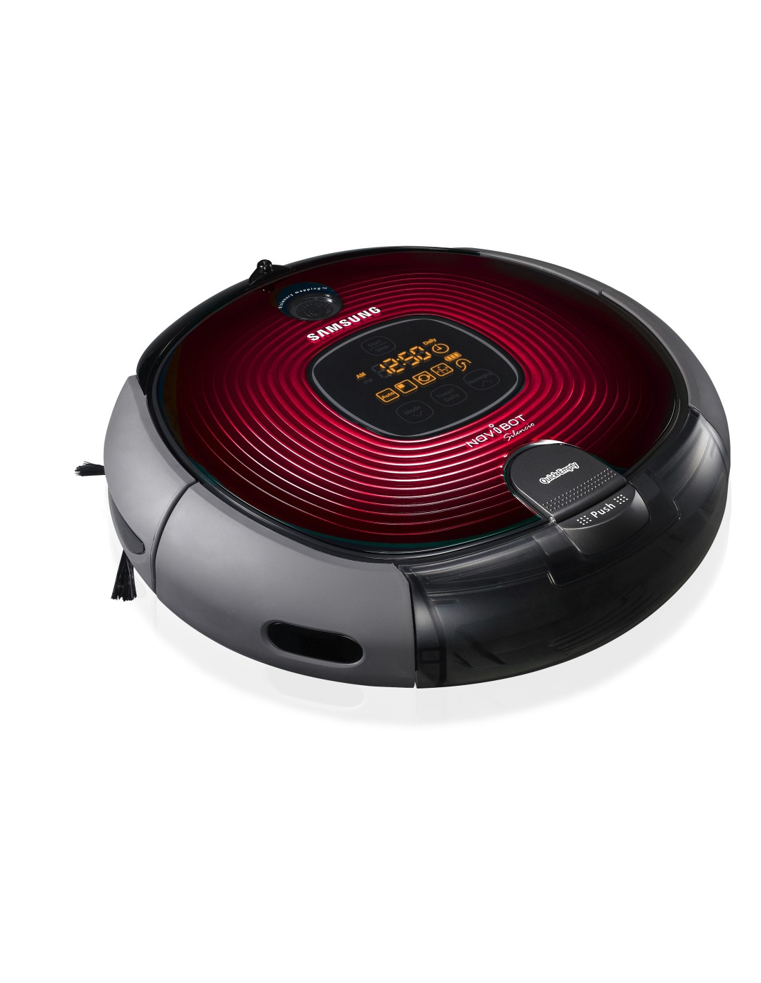 Samsung SR8894. Tipo di contenitore della polvere: Senza sacchetto, Colore del prodotto: Rosso, Forma: Rotondo. Emissione acustica: 60 dB. Tecnologia batteria: Nichel-Metallo Idruro (NiMH). Diametro: 35,5 cm, Altezza: 93 mm