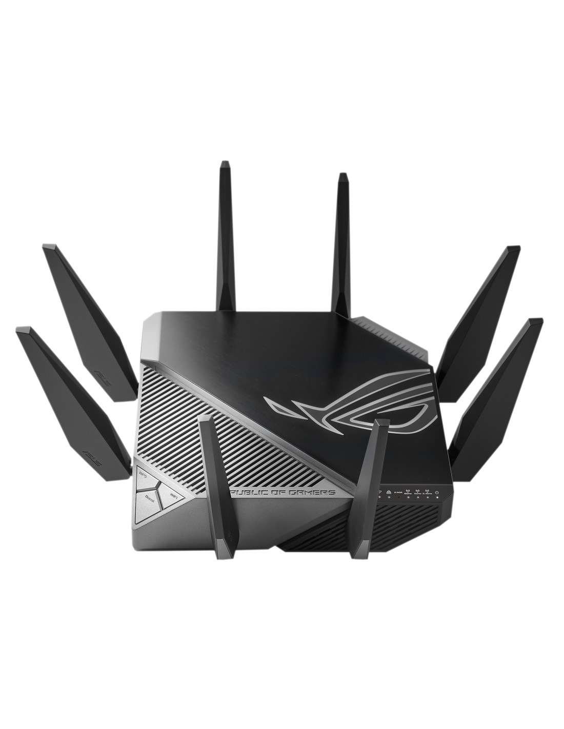 ASUS GT-AXE11000. Tipo di connessione WAN: RJ-45. Banda Wi-Fi: Tri-band (2,4 GHz/5 GHz/6 GHz), Wi-Fi standard: Wi-Fi 6 (802.11ax), Intervallo di trasferimento dei dati WLAN (max): 4804 Mbit/s. Tipo di interfaccia LAN Ethernet: Gigabit Ethernet, Velocità trasferimento Ethernet LAN: 10,100,1000,2500 Mbit/s, Tecnologia di cablaggio: 10/100/1000Base-T(X). Algoritmi di sicurezza supportati: SSH, WPA-Enterprise, WPA2-Enterprise, WPA3, WPS, Funzionalità NAT: PPTP, L2TP, IPSec, RTSP, H.323, SIP Passthrough, PPPoE relay. Tipo di prodotto: Router da tavolo, Colore del prodotto: Nero, Indicatori LED: LAN, Potenza, status, WAN