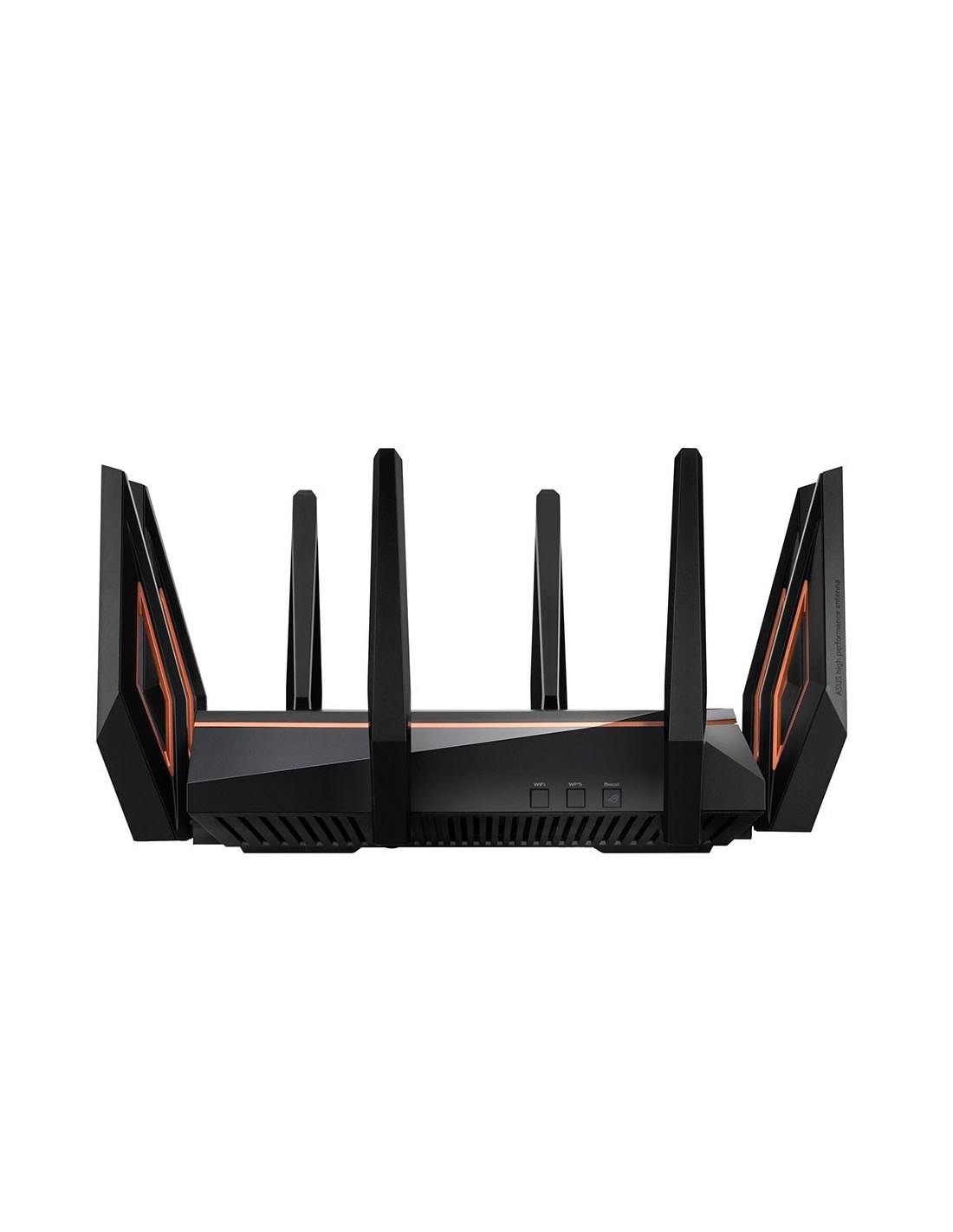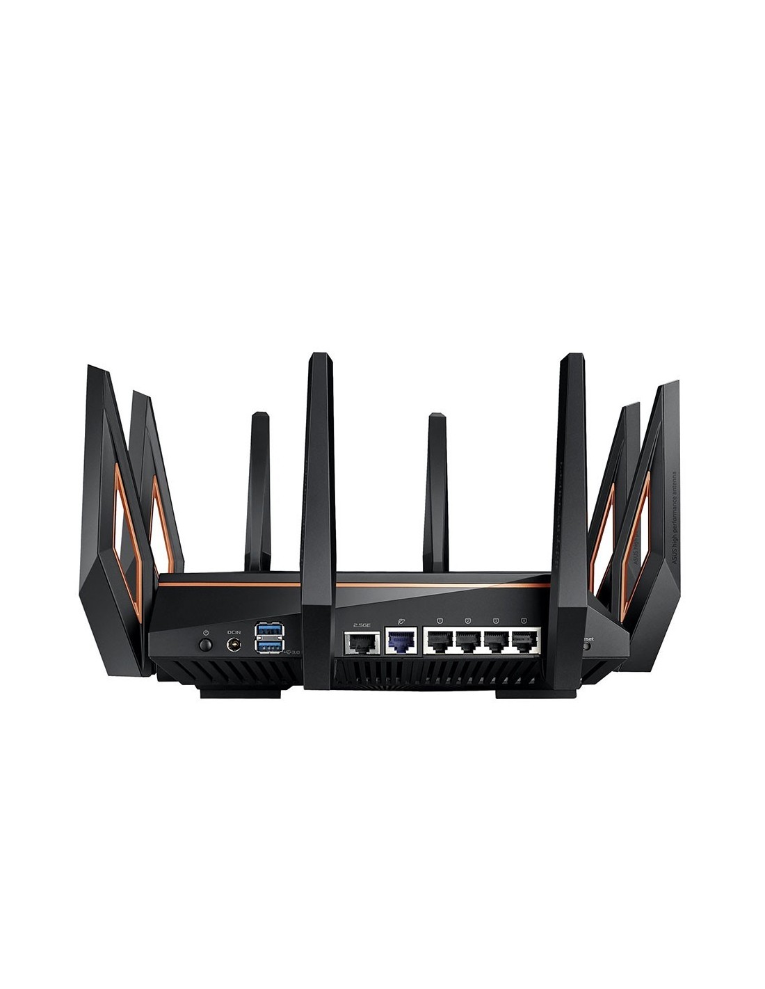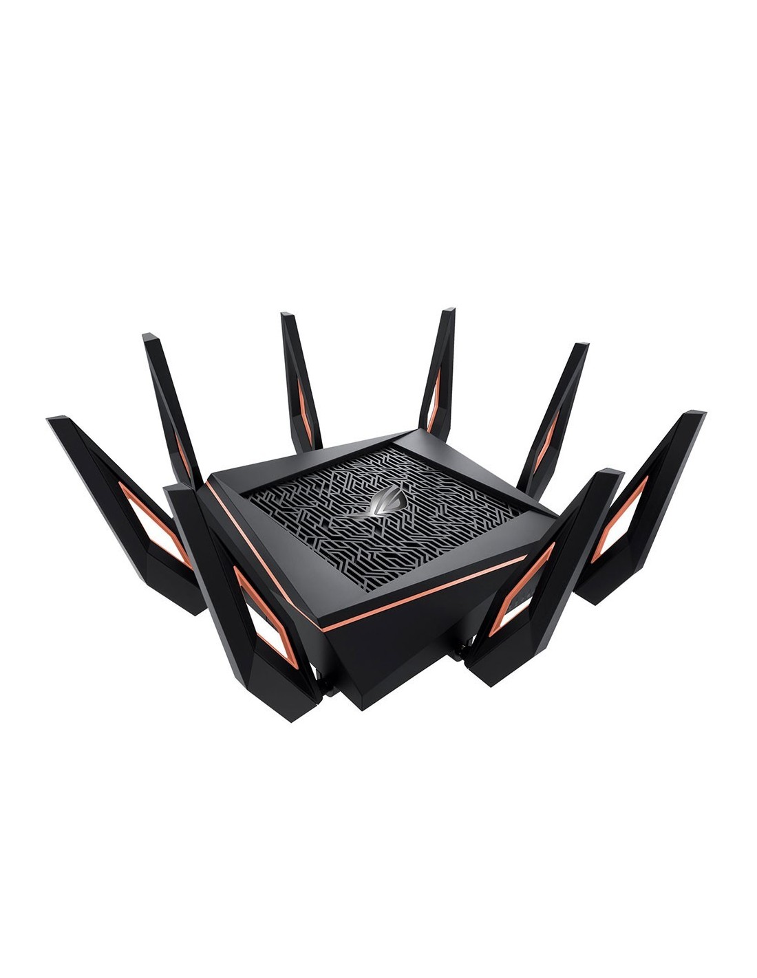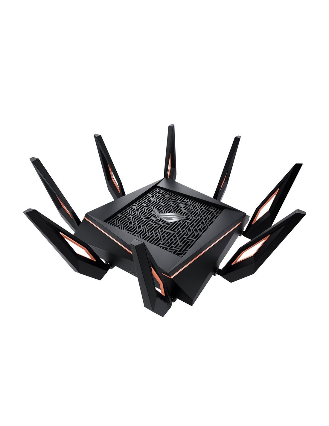ASUS GT-AX11000. Tipo di connessione WAN: RJ-45. Banda Wi-Fi: Banda tripla (2.4 GHz/5 GHz/5 GHz), Wi-Fi standard: Wi-Fi 6 (802.11ax), Intervallo di trasferimento dei dati WLAN (max): 4804 Mbit/s. Tipo di interfaccia LAN Ethernet: Gigabit Ethernet, Standard di rete: IEEE 802.11a, IEEE 802.11ac, IEEE 802.11ax, IEEE 802.11b, IEEE 802.11g, IEEE 802.11n, Supporto VPN: IPSec Pass-Through PPTP Pass-Through L2TP Pass-Through PPTP server OpenVPN server PPTP client L2TP.... Algoritmi di sicurezza supportati: 64-bit WEP, 128-bit WEP, WPA-Enterprise, WPA-PSK, WPA2-Enterprise, WPA2-PSK, WPS. Tipo di prodotto: Router da tavolo, Colore del prodotto: Nero, Indicatori LED: LAN, Potenza, USB, WAN, WLAN, WPS