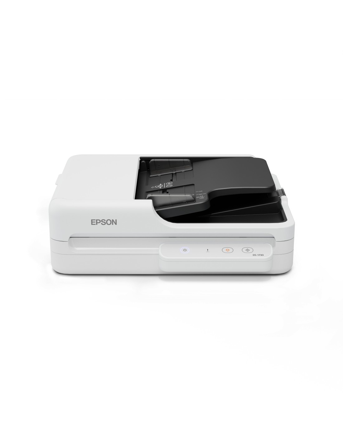 Epson WorkForce DS-1730. Massima dimensione di scansione: 215,9 x 297 mm, Risoluzione di scansione ottica: 1200 x 1200 DPI, Profondità di scansione del colore in entrata: 30 bit. Tipo di scansione: Scanner a piano e ADF, Colore del prodotto: Nero, Bianco. Tipo sensore: CIS, Ciclo di funzionamento quotidiano (max): 3000 pagine, Fonte di luce: LED RGB. Capacità di input standard: 60 fogli. Massimo formato carta serie ISO A: A4, Scanning media types supported: Biglietto da visita, Scheda plastica, Dimensioni ISO serie-A (A0...A9): A4, A5, A6