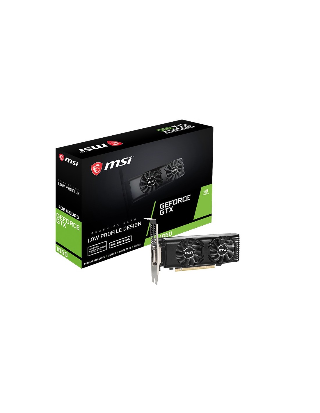 MSI GeForce GTX 1650 4GT LP OC. Processore grafico / fornitore: NVIDIA, Processore grafico: GeForce GTX 1650. Memoria Grafica Dedicata: 4 GB, Tipo memoria adattatore grafico: GDDR5, Ampiezza dati: 128 bit. Risoluzione massima: 7680 x 4320 Pixel. Versione DirectX: 12.0, Versione OpenGL: 4.5, Dual Link DVI. Tipo interfaccia: PCI Express x16 3.0. Tipo di raffreddamento: Attivo, Numero di ventole: 2 ventola(e)