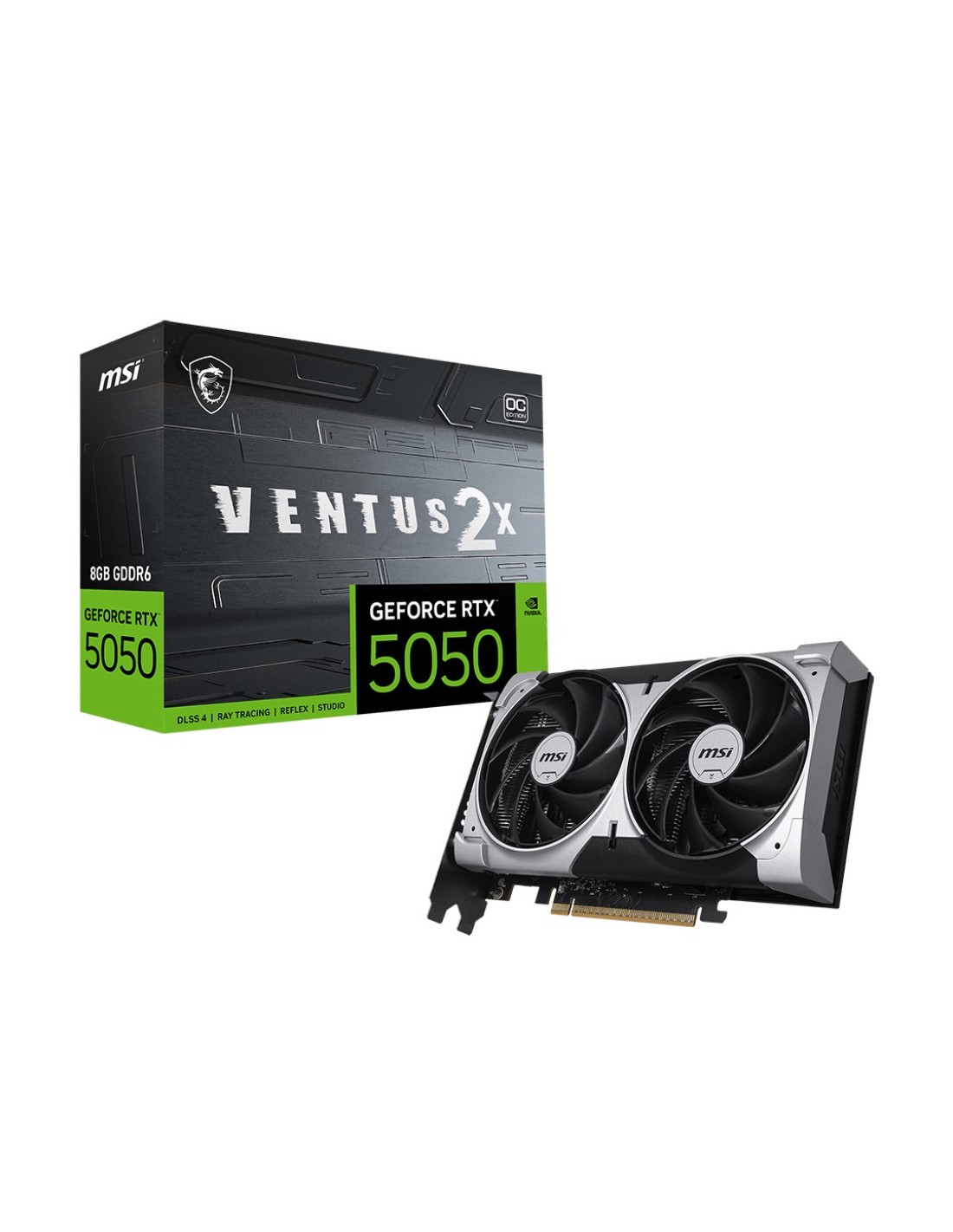 MSI GEFORCE RTX 5050 8G VENTUS 2X OC. Processore grafico / fornitore: NVIDIA, Processore grafico: GeForce RTX 5050. Memoria Grafica Dedicata: 8 GB, Tipo memoria adattatore grafico: GDDR6, Ampiezza dati: 128 bit. Risoluzione massima: 7680 x 4320 Pixel. Versione DirectX: 12 Ultimate, Versione OpenGL: 4.6. Tipo interfaccia: PCI Express x16 5.0. Tipo di raffreddamento: Attivo, Numero di ventole: 2 ventola(e)