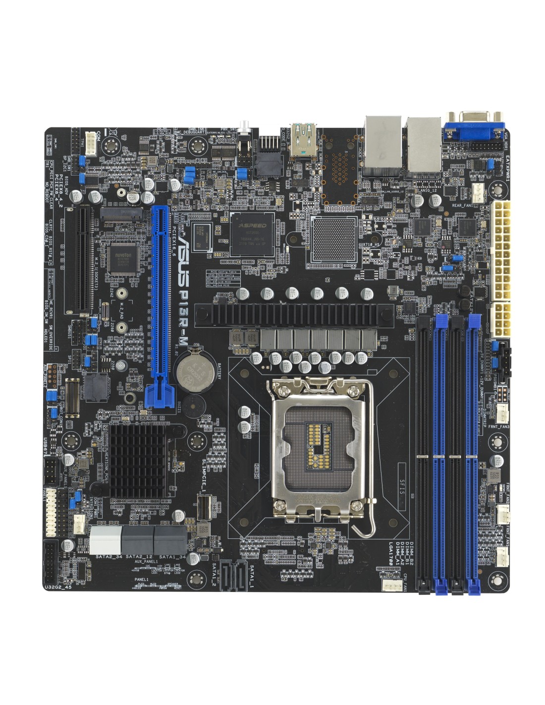 ASUS P13R-M. Produttore processore: Intel, Presa per processore: LGA 1700, Processori compatibili: Intel® Pentium®, Intel Xeon E. Tipi di memoria supportati: DDR5-SDRAM, RAM massima supportata: 128 GB, tipo di slot di memoria: DIMM. Interfacce dell'unità di archiviazione supportate: M.2, SATA III, Tipi di unità di archiviazione supportate: HDD & SSD. Famiglia della scheda grafica: ASPEED, Adattatore grafico: AST2600. Tipo di interfaccia Ethernet: Fast Ethernet, Gigabit Ethernet, Controller LAN: Intel® I210-AT