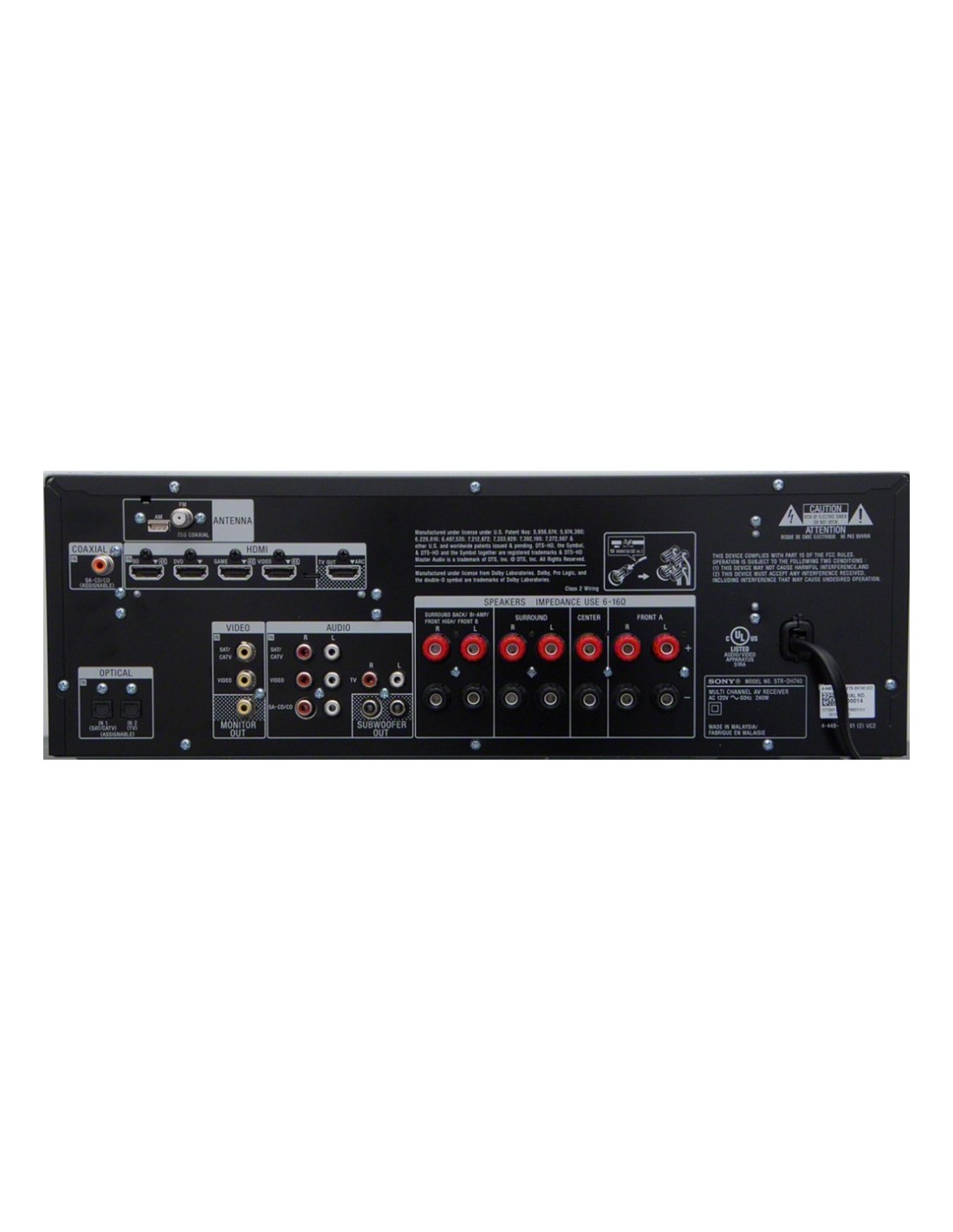 Sony STR-DH740. Sistema audio: 7.2 canali, Potenza d'uscita per canale (1KHz@6 Ohm): 145 W, Distorsione armonica totale (THD): 0,9%. Tecnologia di connessione: Cablato. Bande del sintonizzatore: AM,FM. Tensione di ingresso AC: 120 V, Frequenza di ingresso AC: 60 Hz, Consumi (modalità stand-by): 0,3 W. Larghezza: 430 mm, Profondità: 329,4 mm, Altezza: 156 mm