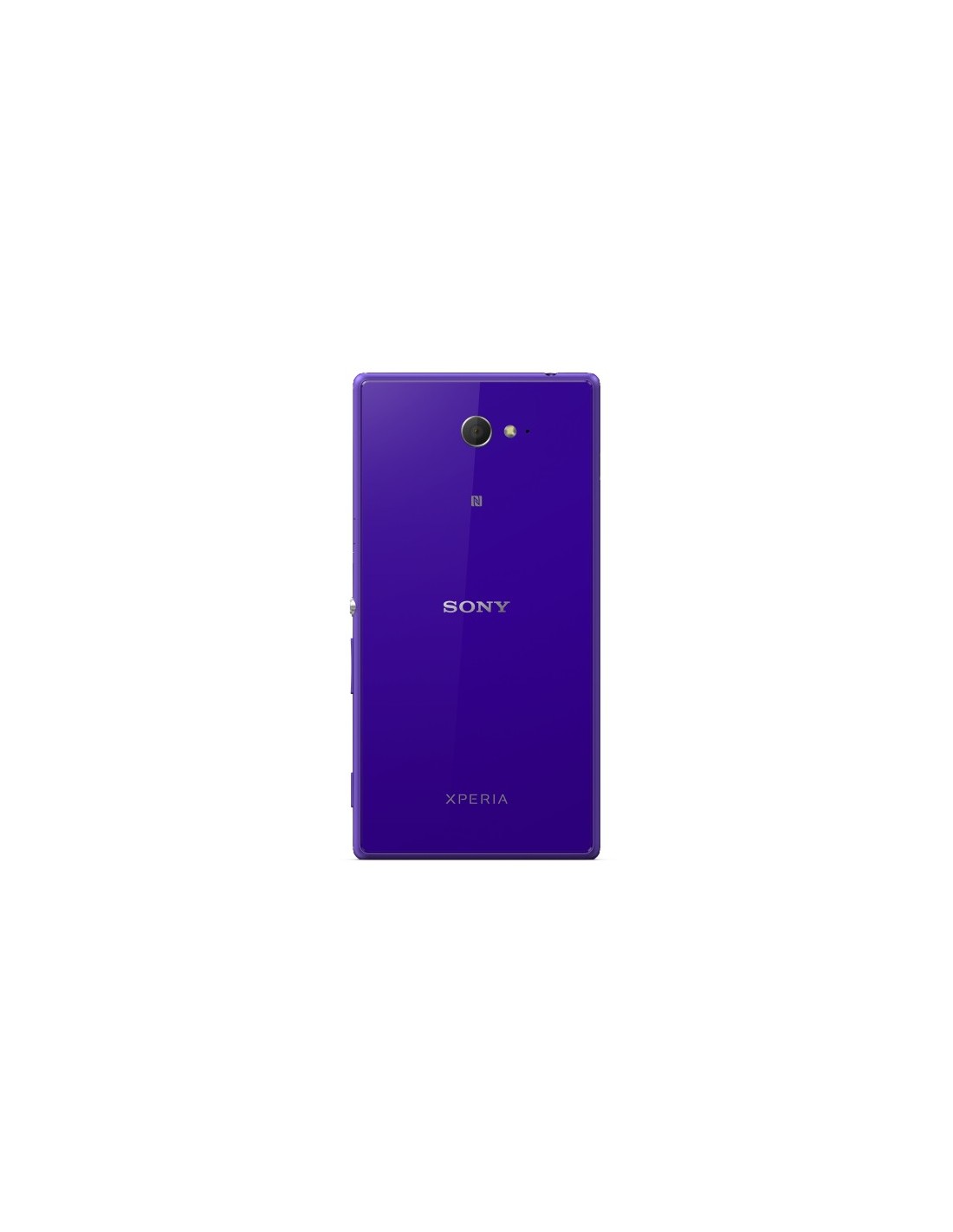 Sony Xperia M2. Dimensioni schermo: 12,2 cm (4.8"), Risoluzione del display: 960 x 540 Pixel, Tipo di display: TFT. Frequenza del processore: 1,2 GHz, Famiglia processore: Qualcomm Snapdragon, Modello del processore: MSM 8926. Capacità della RAM: 1 GB, Capacità memoria interna: 8 GB. Risoluzione fotocamera posteriore (numerico): 8 MP, Tipo di fotocamera posteriore: Fotocamera singola. Capacità della scheda SIM: SIM singola. Sistema operativo incluso: Android 4.3. Capacità della batteria: 2330 mAh. Colore del prodotto: Porpora. Peso: 148 g