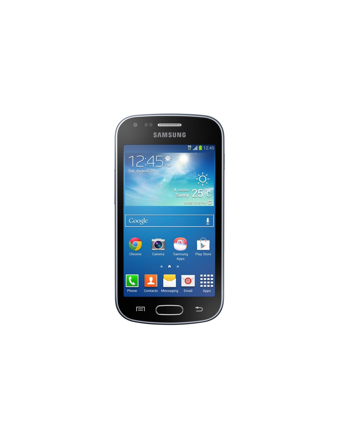 Samsung Galaxy Trend Plus GT-S7580. Dimensioni schermo: 10,2 cm (4"), Risoluzione del display: 480 x 800 Pixel, Tipo di display: TFT. Frequenza del processore: 1,2 GHz. Capacità della RAM: 0,75 GB, Capacità memoria interna: 4 GB. Risoluzione fotocamera posteriore (numerico): 5 MP, Tipo di fotocamera posteriore: Fotocamera singola. Capacità della scheda SIM: SIM singola. Sistema operativo incluso: Android 4.2. Capacità della batteria: 1500 mAh. Colore del prodotto: Nero. Peso: 118 g