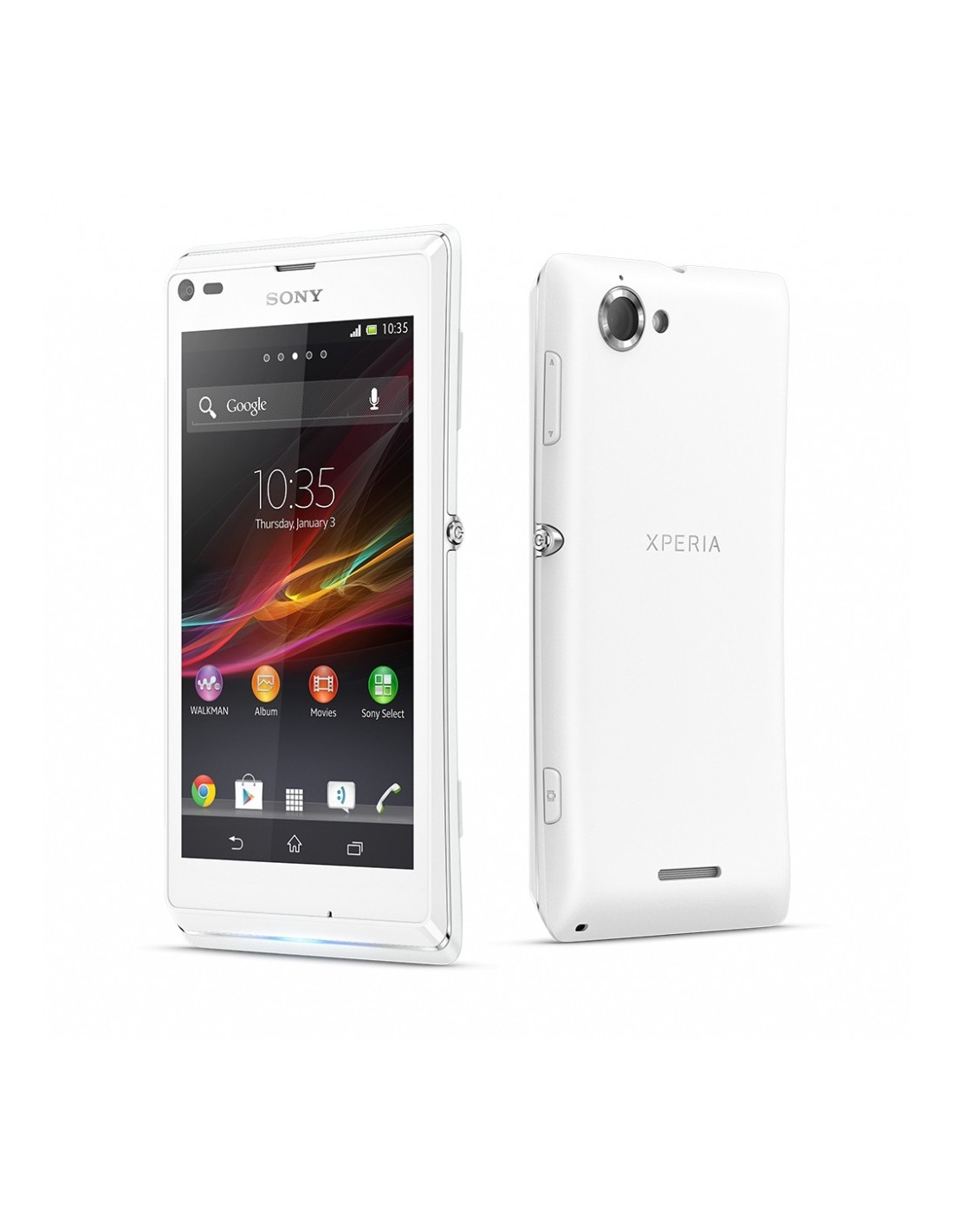 Sony Xperia ™ L smartphone. Dimensioni schermo: 10,9 cm (4.3"), Risoluzione del display: 854 x 480 Pixel, Tipo di display: TFT. Frequenza del processore: 1 GHz, Famiglia processore: Qualcomm, Modello del processore: MSM 8230. Capacità della RAM: 1 GB, Capacità memoria interna: 8 GB. Risoluzione fotocamera posteriore (numerico): 8 MP, Tipo di fotocamera posteriore: Fotocamera singola. Capacità della scheda SIM: SIM singola. Sistema operativo incluso: Android 4.1. Colore del prodotto: Bianco. Peso: 137 g