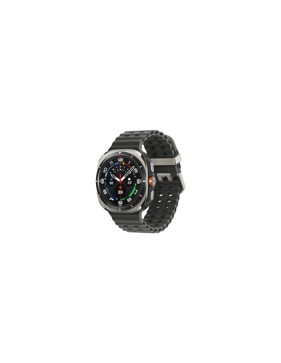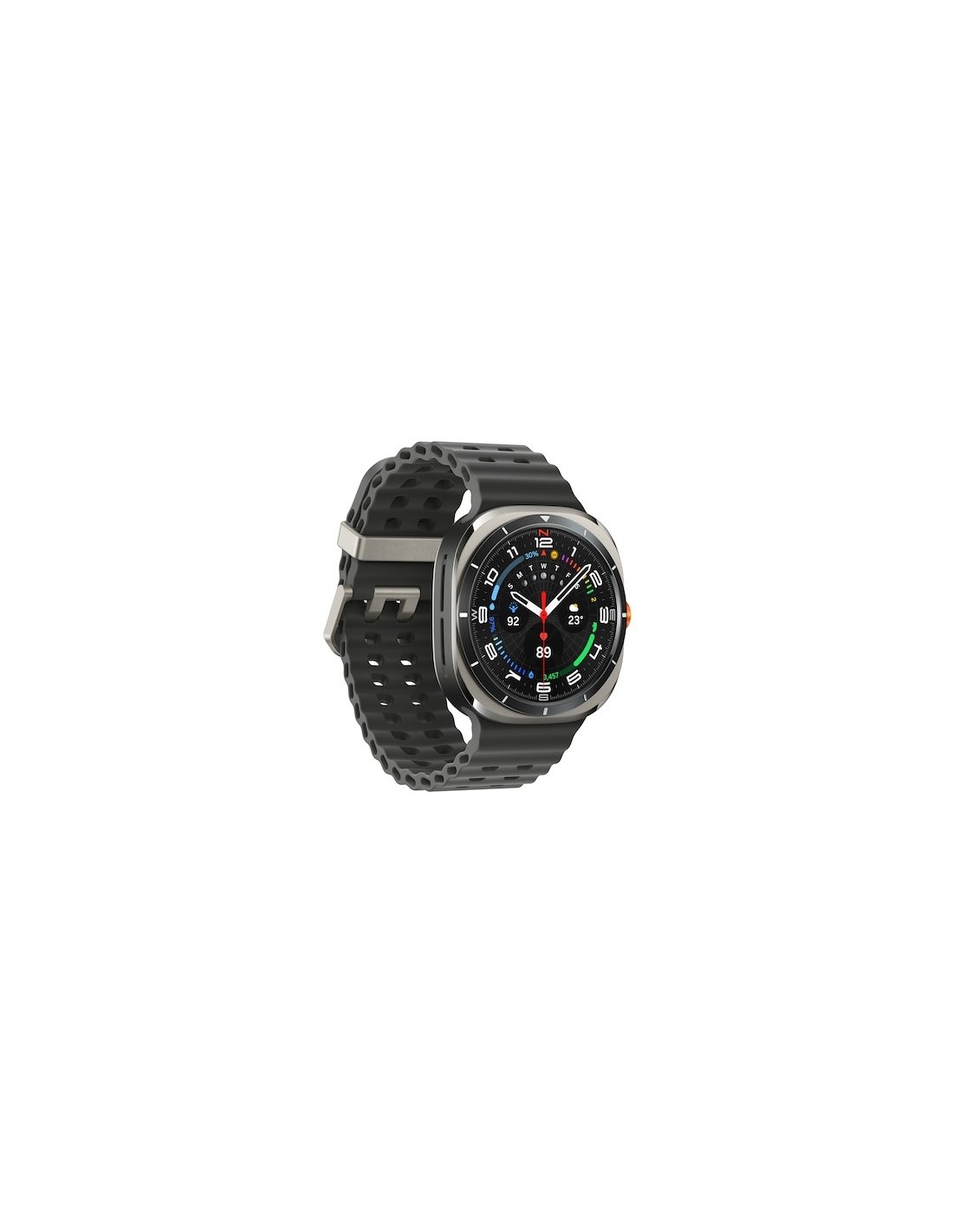 Samsung Galaxy Watch Ultra. Dimensioni diagonale schermo: 3,81 cm (1.5"), Tecnologia display: AMOLED, Risoluzione del display: 480 x 480 Pixel, Touch screen. Capacità RAM: 2000 MB, Memoria flash: 64 GB. Wi-Fi. GPS (satellitare). Capacità della batteria: 590 mAh. Peso: 60,5 g. Colore cinturino: Grigio. Sistema operativo incluso: Wear OS