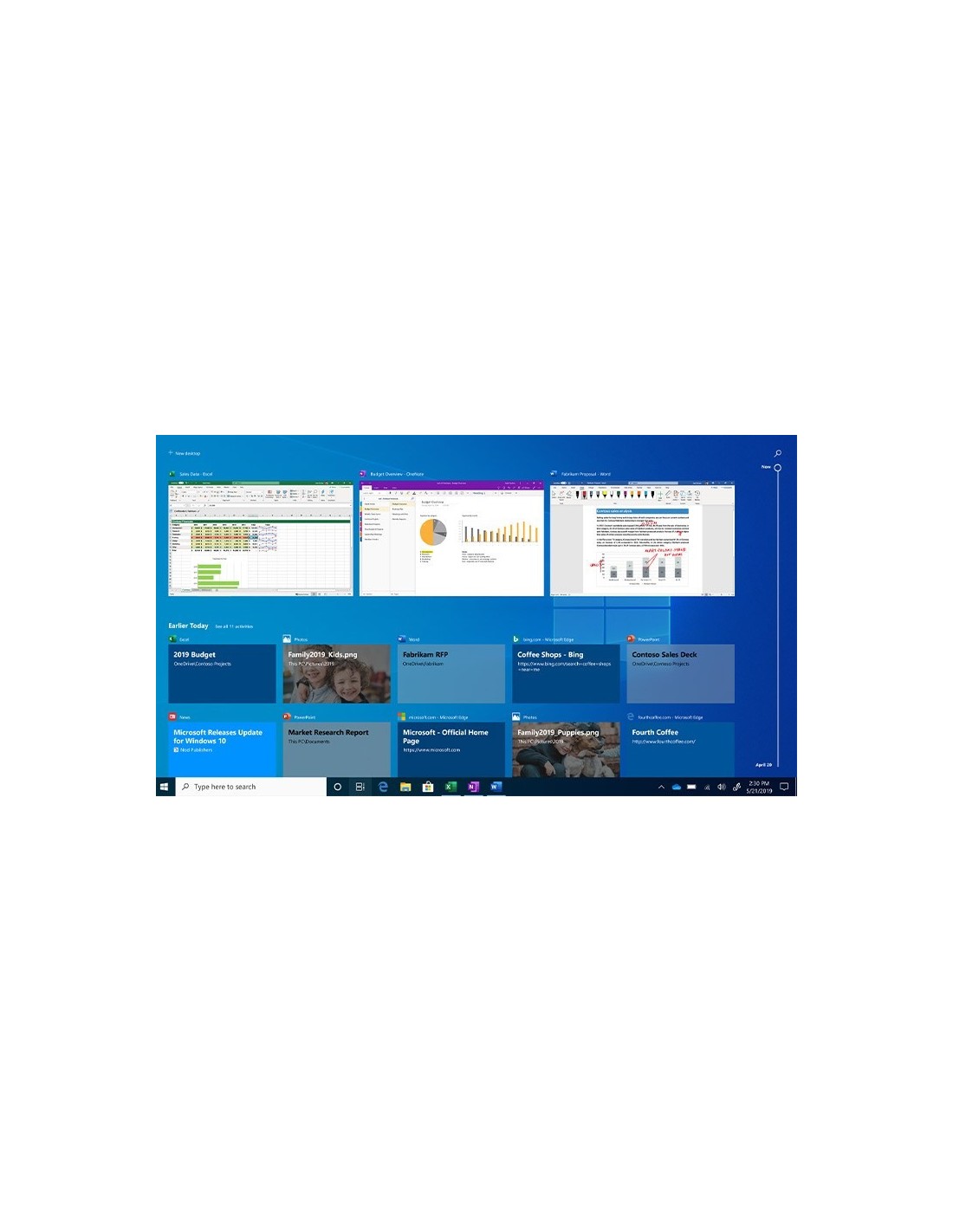 Lavora a pieno ritmo grazie alla possibilità di visualizzare sullo schermo quattro attività contemporaneamente. Schermo troppo affollato? Crea desktop virtuali per avere più spazio e lavorare solo con gli elementi che desideri. Inoltre, tutte le notifiche e impostazioni principali sono raccolte in un'unica schermata di facile accesso.