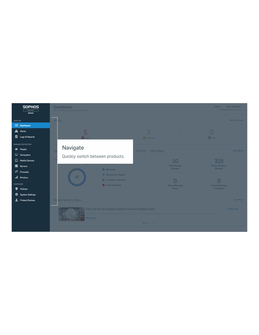 Sophos Central consente di gestire la nostra pluripremiata piattaforma di Synchronized Security. Gli attacchi informatici da parte delle minacce avanzate sono ora più organizzati che mai. Ma la novità è che adesso anche i vostri sistemi di difesa possono essere sempre più preparati ad affrontare qualsiasi situazione critica. Il nostro rivoluzionario Security Heartbeat™ garantisce la comunicazione tra endpoint e firewall. È un'idea semplice ma efficace, che si traduce in un maggior livello di protezione contro le minacce avanzate, consentendovi di risparmiare tempo prezioso sulla risposta agli incidenti. È talmente semplice che è strano che non ci avesse ancora pensato nessuno.