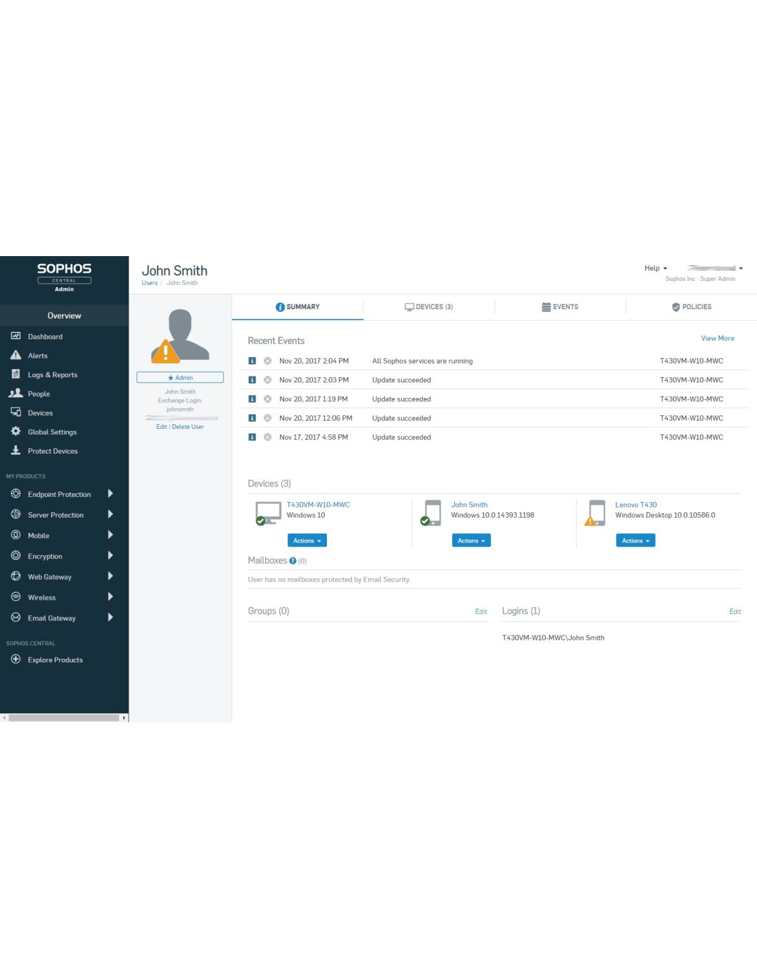 Piattaforma Sophos Central