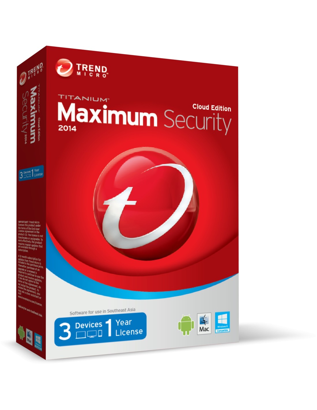 Trend Micro Titanium Maximum Security 2014, 2Y, 5u, ML. Quantità licenze: 5 licenza/e, Anni: 2 anno/i. Spazio minimo Hard Disk: 500 MB, RAM minima: 256 MB