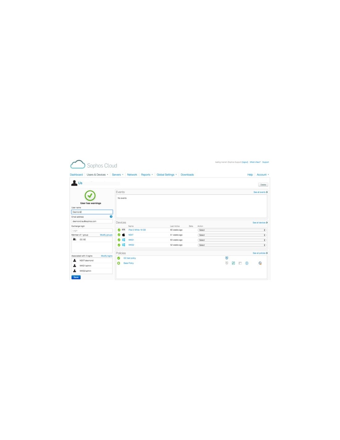 Sophos Cloud è l'unica soluzione di sicurezza integrata per Windows e Mac, oltre che di gestione dei dispositivi mobili. Con la sua esperienza utente semplice e intuitiva, Sophos Cloud è facilissima da installare, gestire e mantenere.