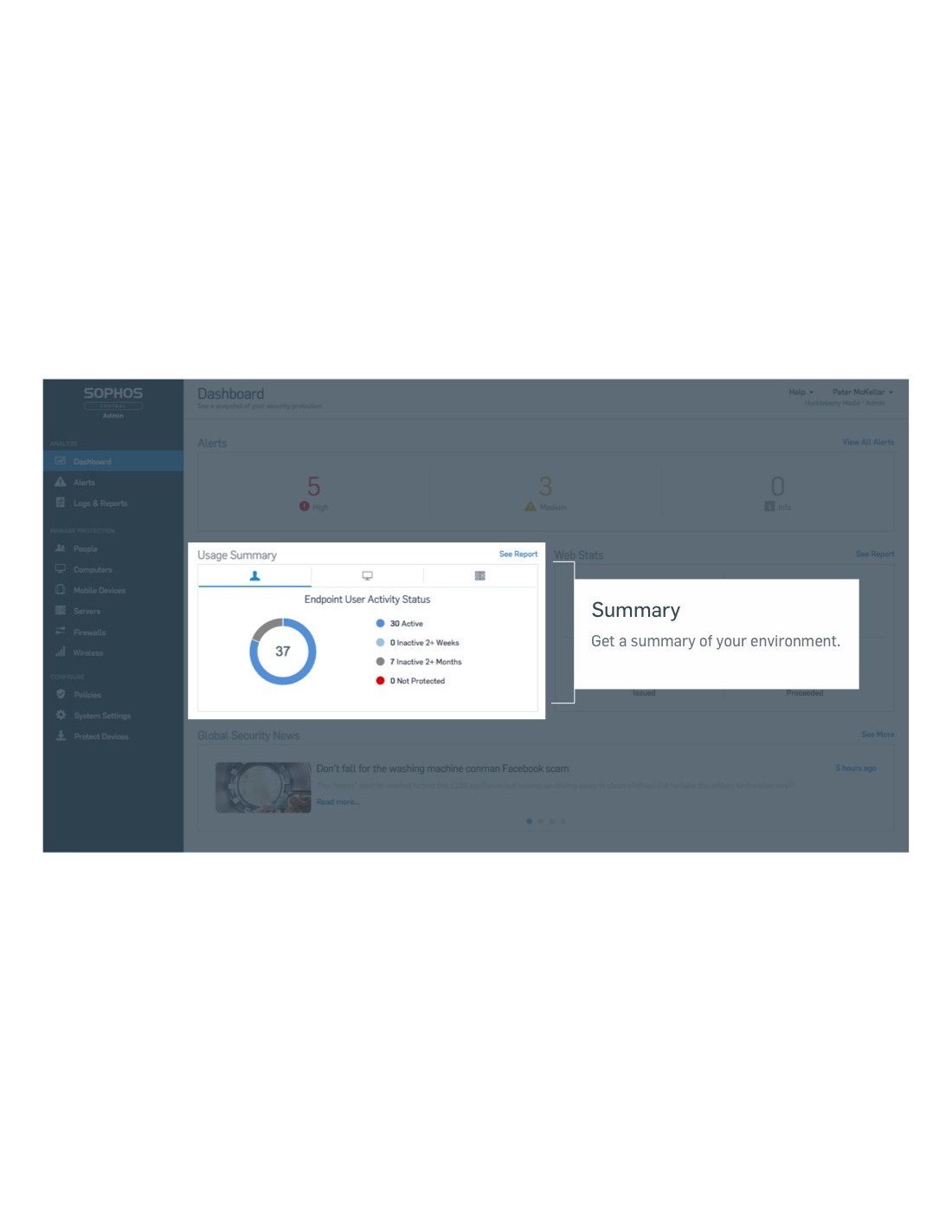 La console unificata per la gestione dei prodotti Sophos.