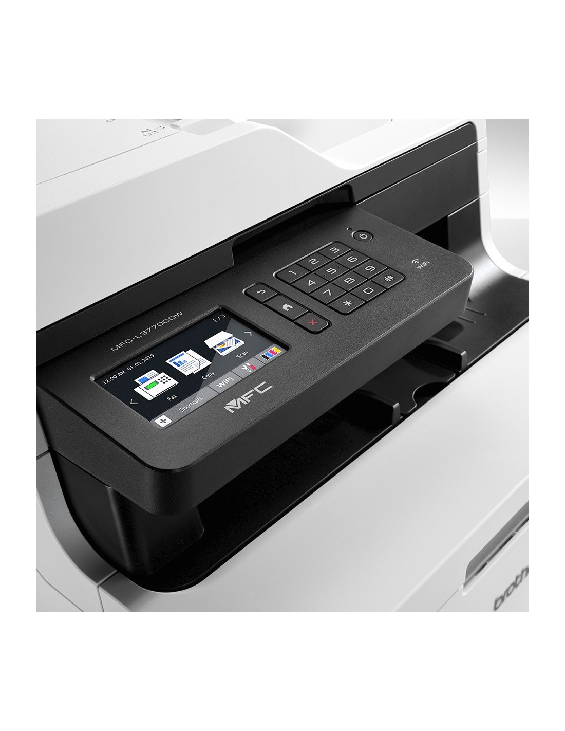 Brother MFC-L3770CDW. Tecnologia di stampa: LED, Stampa: Stampa a colori, Risoluzione massima: 2400 x 600 DPI, Velocità di stampa (colore, qualità normale, A4/US Letter): 24 ppm. Copia: Copia a colori, Risoluzione di copia massima: 600 x 600 DPI. Scansione: Scansione a colori, Risoluzione di scansione ottica: 2400 x 1200 DPI. Massimo formato carta serie ISO A: A4. Wi-Fi. Stampa diretta. Colore del prodotto: Nero, Bianco