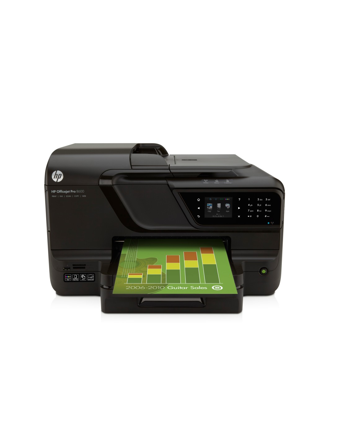 HP OfficeJet Pro 8600. Tecnologia di stampa: Ad inchiostro, Stampa: Stampa a colori, Risoluzione massima: 4800 x 1200 DPI, Velocità di stampa (colore, qualità normale, A4/US Letter): 13 ppm. Copia: Copia a colori, Risoluzione di copia massima: 1200 x 600 DPI. Scansione: Scansione a colori, Risoluzione di scansione ottica: 4800 x 4800 DPI. Fax: Fax a colori. Massimo formato carta serie ISO A: A4. Wi-Fi. Stampa diretta