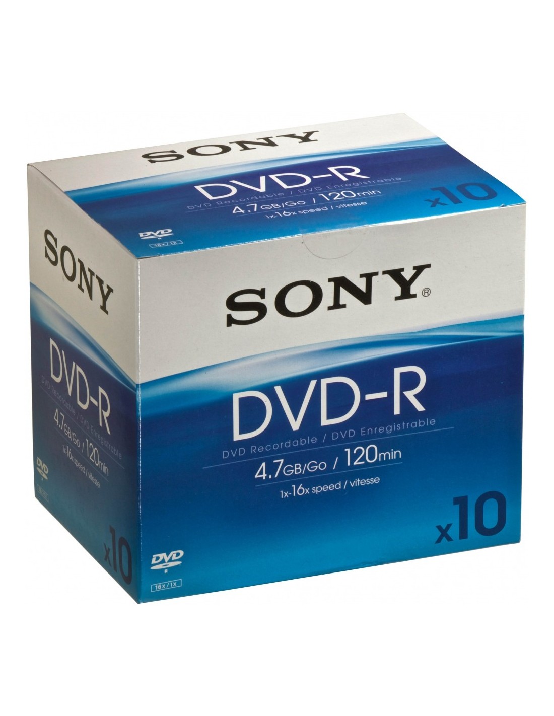 Sony DVD-R. Capacità originaria: 4,7 GB, Diametro disco ottico: 120 mm, Quantità per pacco: 10 pz