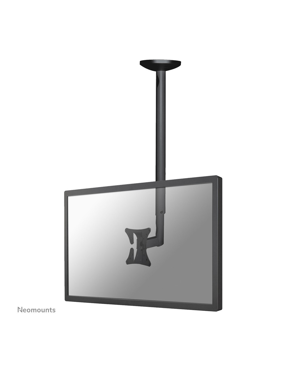 Neomounts by Newstar Supporto da soffitto per schermi LCD/LED/TFT. Peso massimo (capacità): 20 kg, Capienza minima dimensioni dello schermo: 25,4 cm (10"), Capienza massima dimensioni dello schermo: 76,2 cm (30"), Compatibilità interfaccia di montaggio (min): 50 x 50 mm, Compatibilità interfaccia di montaggio (max): 100 x 100 mm. Range di regolazione altezza: 500 - 850 mm, Inclinazione: 0 - 40°, Angolo di rotazione: 180°. Colore del prodotto: Nero