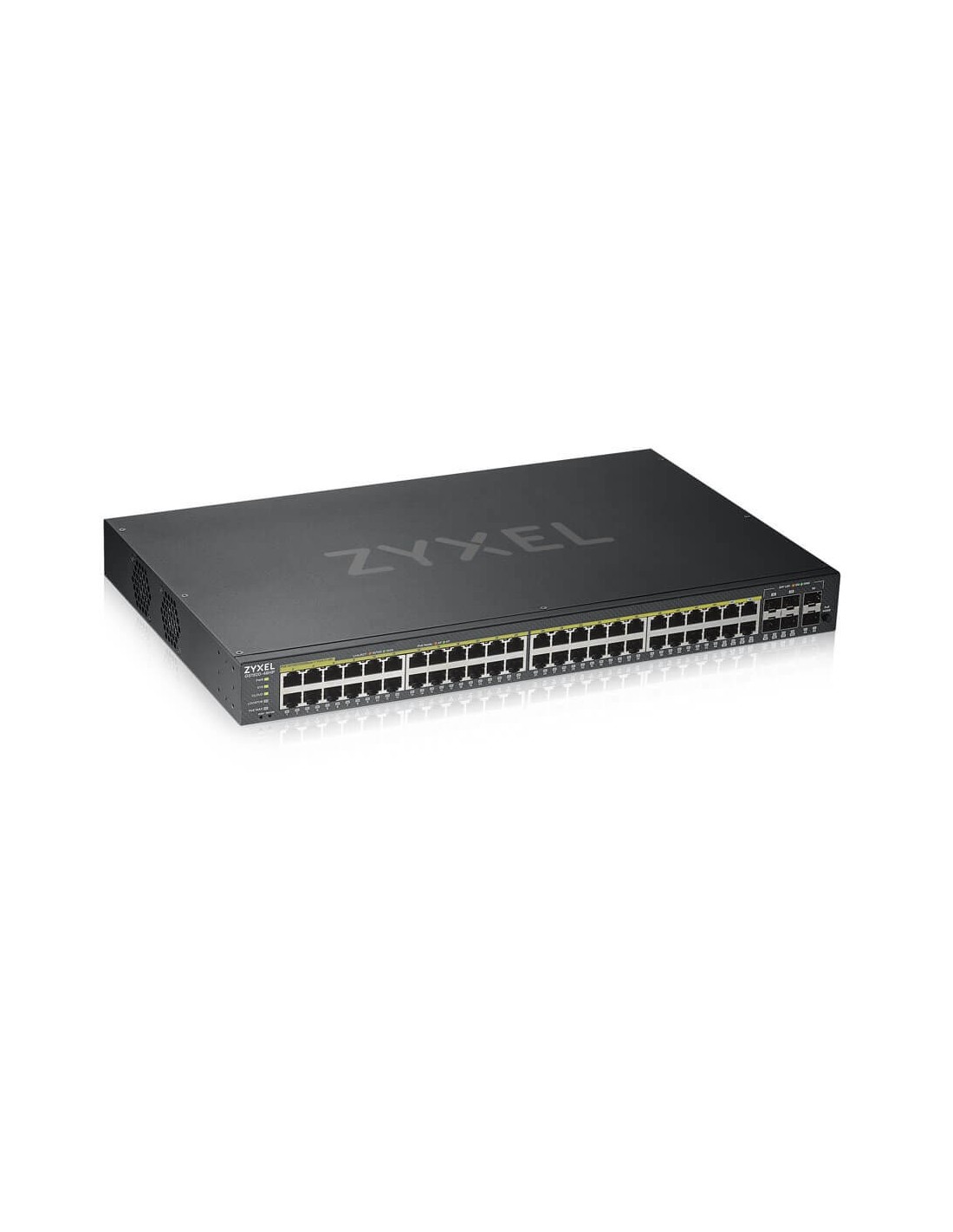 Zyxel GS1920-48HPV2. Tipo interruttore: Gestito. Tipo di porte RJ-45: Gigabit Ethernet (10/100/1000), Quantità di porte RJ-45: 44. Dimensioni tavola MAC: 16000 voci, Capacità di commutazione: 100 Gbit/s. Standard di rete: IEEE 802.1D,IEEE 802.1Q,IEEE 802.1ab,IEEE 802.1p,IEEE 802.1s,IEEE 802.1w,IEEE 802.1x,IEEE.... Supporto Power over Ethernet (PoE)