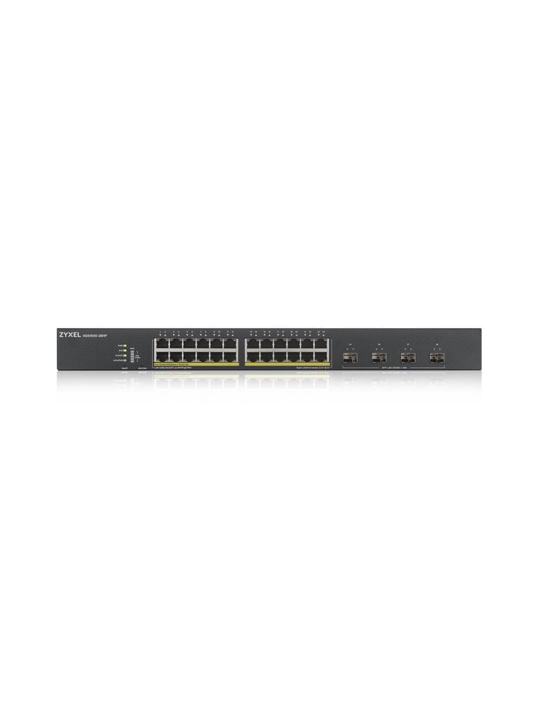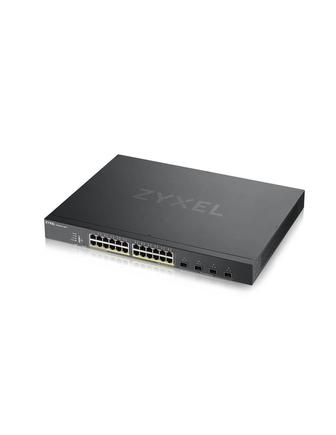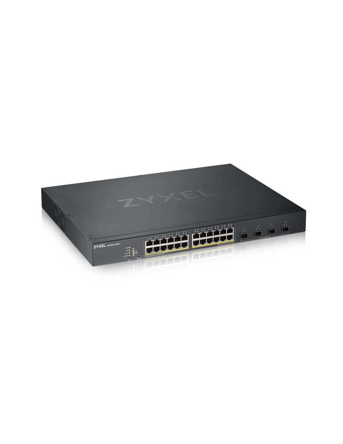 Zyxel XGS1930-28HP. Tipo interruttore: Gestito, Livello del commutatore: L3. Tipo di porte RJ-45: Gigabit Ethernet (10/100/1000), Quantità di porte RJ-45: 24. Dimensioni tavola MAC: 16000 voci, Capacità di commutazione: 128 Gbit/s. Standard di rete: IEEE 802.1D,IEEE 802.1Q,IEEE 802.1ab,IEEE 802.1p,IEEE 802.1s,IEEE 802.1w,IEEE 802.1x,IEEE.... Supporto Power over Ethernet (PoE). Montaggio rack