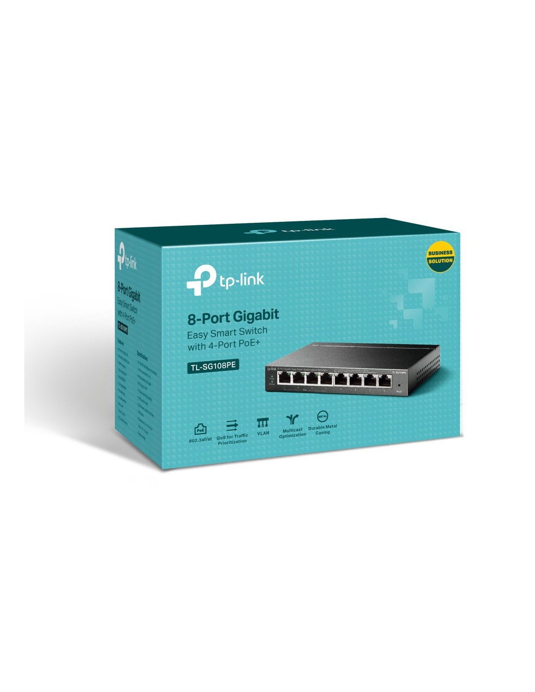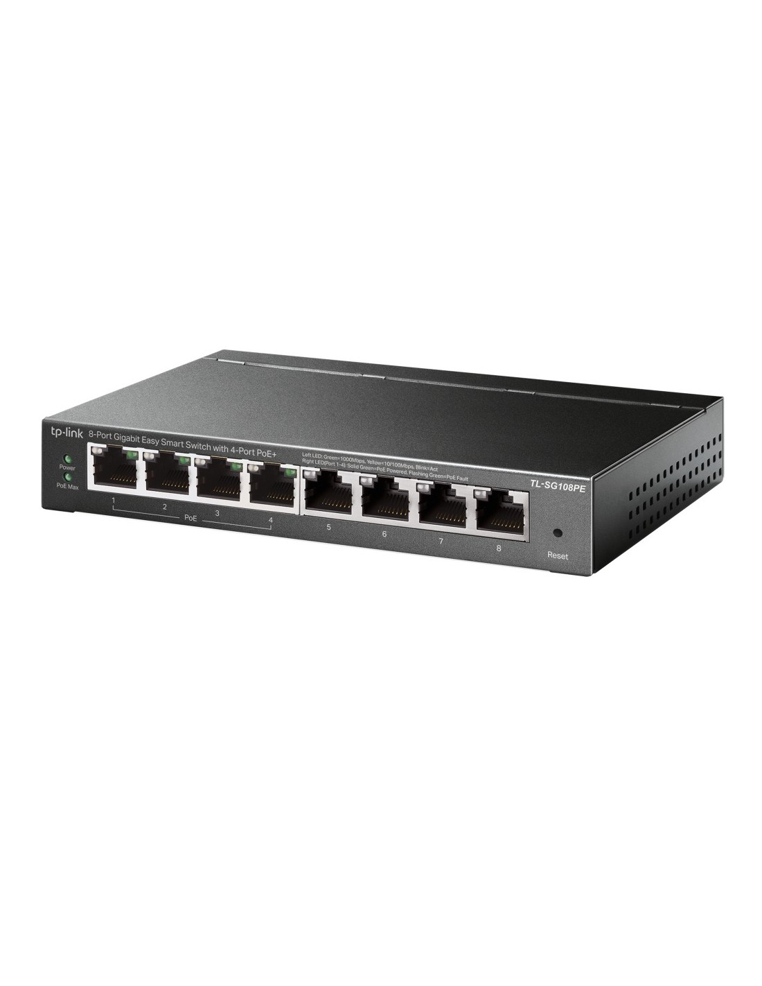 TP-Link TL-SG108PE. Tipo interruttore: Non gestito, Livello del commutatore: L2. Tipo di porte RJ-45: Gigabit Ethernet (10/100/1000), Quantità di porte RJ-45: 8. Dimensioni tavola MAC: 4000 voci, Capacità di commutazione: 16 Gbit/s. Standard di rete: IEEE 802.1Q, IEEE 802.1p, IEEE 802.3ab, IEEE 802.3i, IEEE 802.3u, IEEE 802.3x. Supporto Power over Ethernet (PoE)