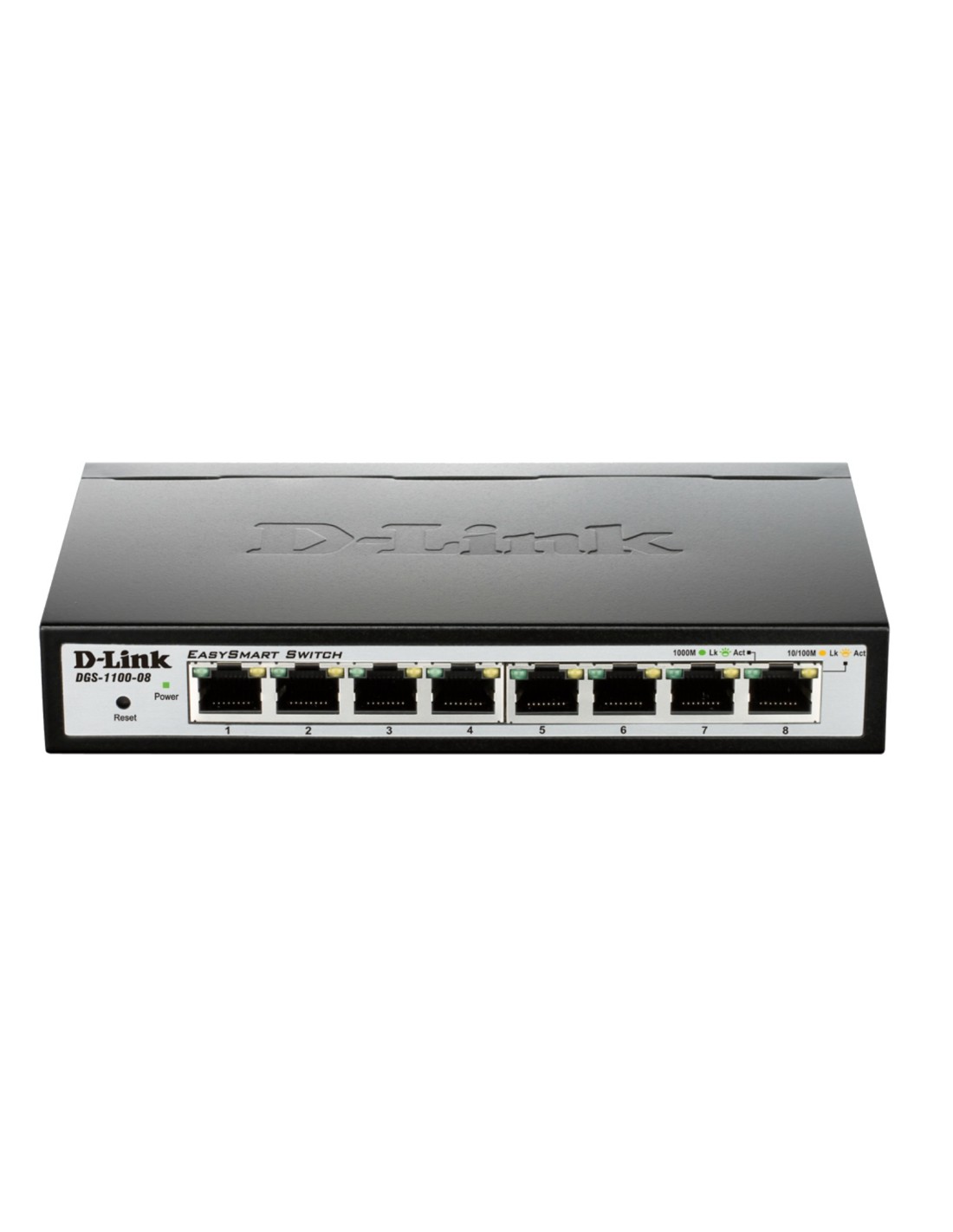 D-Link DGS-1100-08. Tipo interruttore: Gestito, Livello del commutatore: L2. Tipo di porte RJ-45: Gigabit Ethernet (10/100/1000), Quantità di porte RJ-45: 8. Full duplex. Dimensioni tavola MAC: 8000 voci, Capacità di commutazione: 16 Gbit/s. Standard di rete: IEEE 802.1p,IEEE 802.1Q,IEEE 802.3,IEEE 802.3az,IEEE 802.3u,IEEE 802.3x. Connettore di alimentazione: Jack DC-ingresso
