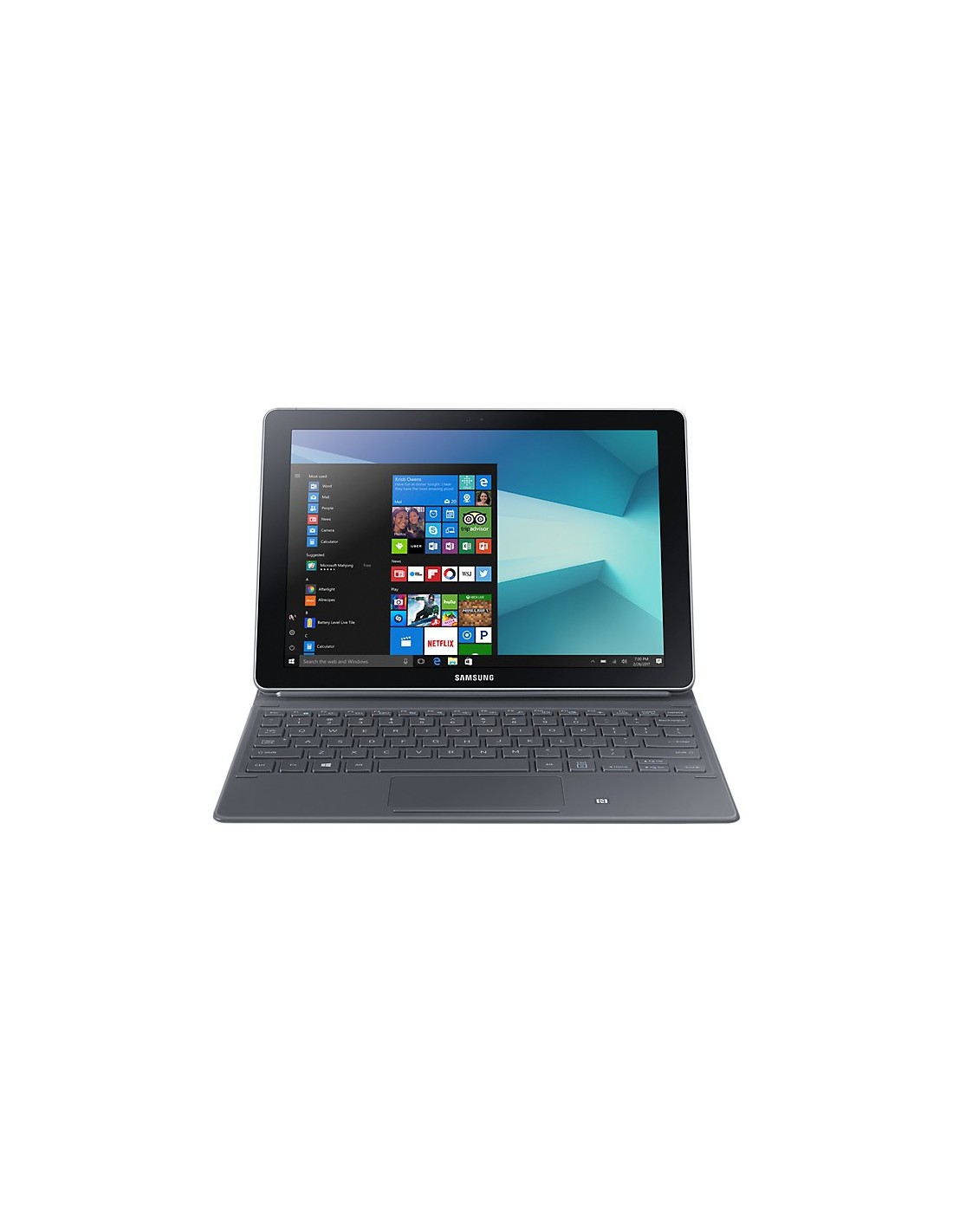 Samsung Galaxy Book SM-W627. Dimensioni schermo: 26,9 cm (10.6"), Risoluzione del display: 1920 x 1080 Pixel. Capacità memoria interna: 64 GB. Frequenza del processore: 2,6 GHz. RAM installata: 4 GB. Risoluzione fotocamera frontale (numerico): 5 MP, Fotocamera frontale. Wi-Fi standard: Wi-Fi 5 (802.11ac). Assistenza funzione GPS (A-GPS). Lettore di schede integrato. Peso: 650 g. Sistema operativo incluso: Windows 10 Home. Colore del prodotto: Argento