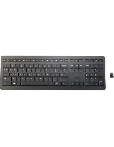 HP Tastiera per collaborazione wireless. Fattore di forma tastiera: Full-size (100%). Stile tastiera: Dritto. Tecnologia di connessione: Wireless, Interfaccia dispositivo: RF Wireless, Interruttore a chiave per tastiera: Interruttore a chiave meccanica, Utilizzo raccomandato: Ufficio. Colore del prodotto: Nero