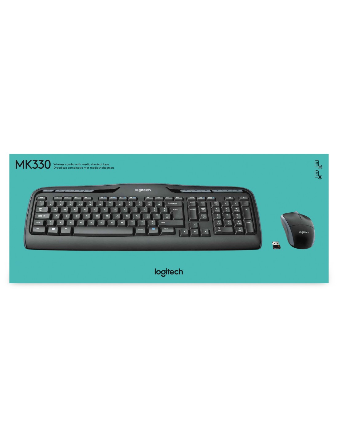 Logitech Wireless Combo MK330. Fattore di forma tastiera: Full-size (100%). Stile tastiera: Dritto. Tecnologia di connessione: Wireless, Interfaccia dispositivo: USB, Struttura tastiera: QWERTY, Utilizzo raccomandato: Ufficio. Colore del prodotto: Nero. Mouse incluso