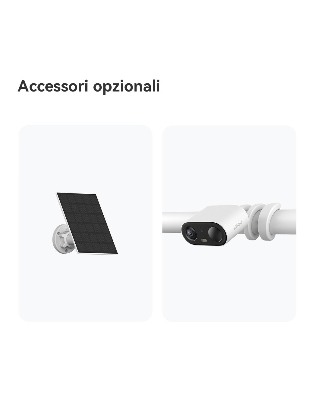 Imou Cell GO Full Color 2K (3MP) Telecamera Wi-Fi Esterno/Interno Batteria Senza Fili, ilevamento PIR/Umano, Visione Notturna a Colori, Audio Bidirezionale con Voce Personalizzata, IP65. Tipo: Telecamera di sicurezza IP, Posizionamento supportato: Esterno, Tecnologia di connessione: Wireless. Tipo di montaggio: Soffitto/muro, Colore del prodotto: Bianco, Fattore di forma: Pallottola (forma). Angolo di visione dell'obiettivo, orizzontale: 98°, Angolo di visione dell'obiettivo, verticale: 54°, Angolo di visione dell'obiettivo, diagonale: 121°. Tipo sensore: CMOS, Dimensioni sensore ottico: 25,4 / 2,8 mm (1 / 2.8"). Zoom digitale: 8x, Lunghezza focale fissa: 2,8 mm