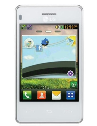 LG T375. Fattore di forma: Barra. Capacità della scheda SIM: Doppia SIM. Dimensioni schermo: 8,13 cm (3.2"), Risoluzione del display: 240 x 320 Pixel, Touch screen. Risoluzione fotocamera posteriore (numerico): 2 MP. WAP: 2.0, Wi-Fi. Bluetooth. Radio FM. Tecnologia batteria: Ioni di Litio, Capacità della batteria: 950 mAh, Autonomia in standby (2G): 601 h. Peso: 97 g. Colore del prodotto: Bianco