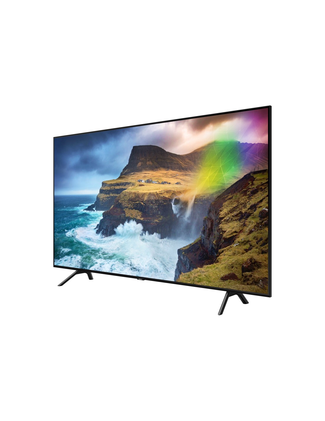 Samsung TV QLED 4K 75" Q70R 2019. Dimensioni schermo: 190,5 cm (75"), Risoluzione del display: 3840 x 2160 Pixel, Tipologia HD: 4K Ultra HD, Tecnologia display: QLED, Forma dello schermo: Piatto. Smart TV. Tecnologia di interpolazione del movimento: PQI (Picture Quality Index) 3300. Formato del segnale digitale: DVB-C,DVB-S2,DVB-T2. Wi-Fi, Collegamento ethernet LAN. Colore del prodotto: Nero