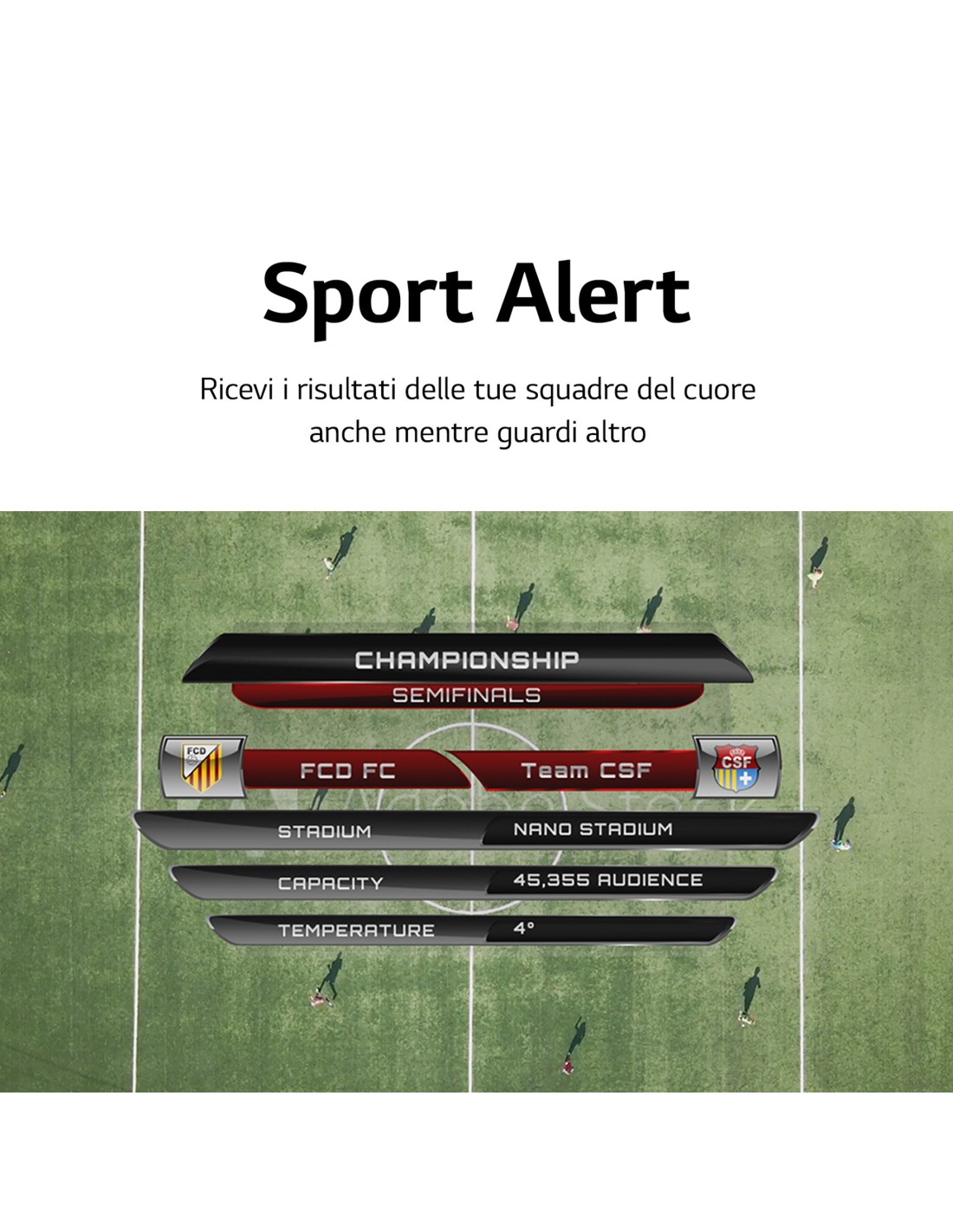 I TV LG sono semplici da usare. Anzi, semplicissimi grazie alla piattaforma Smart TV webOS 22, ancora più intuitiva, completa e intelligente. Così "smart" che da quest'anno mette a tua disposizione una schermata principale diversa per ogni componente della tua famiglia, per consigliare a ciascuno contenuti specifici in base al proprio profilo. Se ti piace lo sport, puoi anche impostare le tue squadre del cuore nell'app Sports Alert e ricevere in tempo reale le notifiche sui risultati delle partite anche mentre guardi altro.