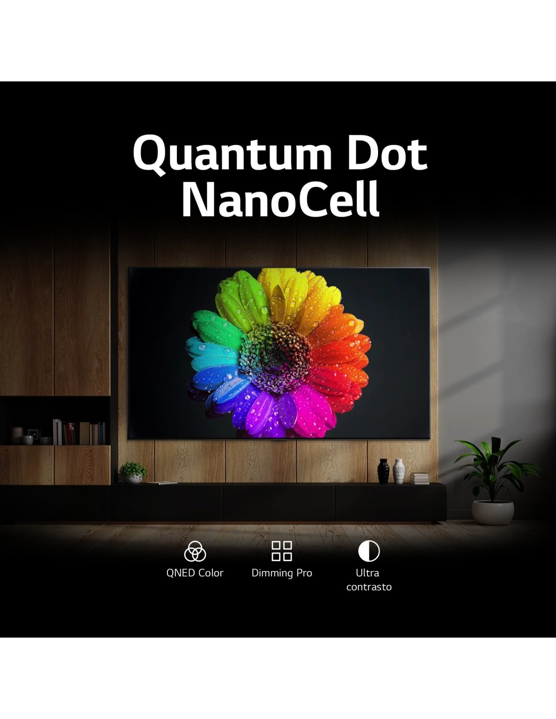 Tecnologia Quantum Dot e NanoCell per colori ancora più puriI TV QNED non implementano un'unica tecnologia per ottimizzare i colori. Ne utilizzano ben 2 - il Quantum Dot e il NanoCell - per offrirti colori molto più brillanti e raffinati rispetto a un TV LED tradizionale. Si tratta di una tecnologia esclusiva di LG che sfrutta le specificità del Quantum Dot e NanoCell per emettere i colori in maniera ancora più precisa. Il risultato è una resa cromatica incredibile per un TV LED.