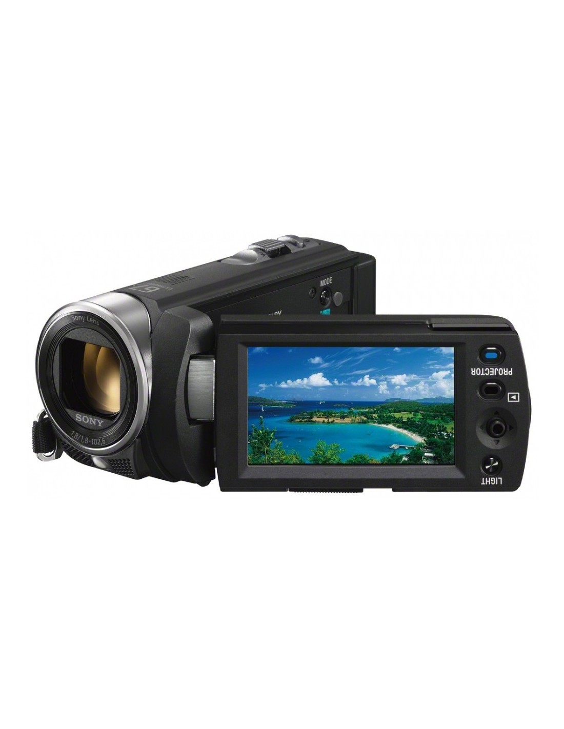 Sony DCR-PJ5EB. Megapixel totali: 0,8 MP, Tipo sensore: CCD. Zoom ottico: 57x, Zoom digitale: 1800x, Lunghezza focale: 1.8 - 102.6 mm. Tipo di supporto videocamera: Scheda di memoria, Tipi schede di memoria: MS PRO Duo,SD,SDHC. Regolazione messa a fuoco: Manuale. Dimensioni schermo: 6,86 cm (2.7"), Tipologia display: LCD, Risoluzione del display (numerico): 230000 Pixel